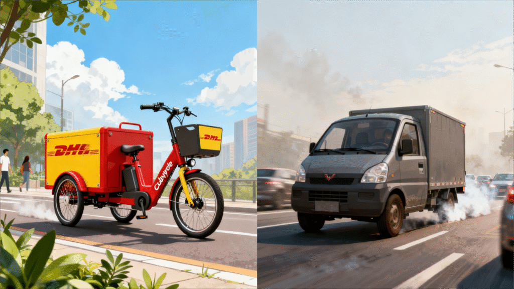 For businesses, the financial argument is even more compelling than the environmental one. A purpose-built electric cargo bike typically costs between $3,000–$10,000, compared to $25,000–$40,000 for a small delivery van.